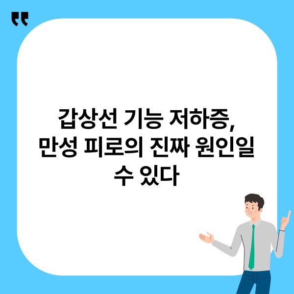 연구에 따르면, 갑상선 기능 저하증 환자의 50% 이상이 만성 피로를 호소합니다. 이로 인해 갑상선 기능을 확인하는 것이 중요하며, 적절한 치료가 필요합니다.