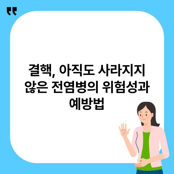 결핵은 오랜 역사에도 불구하고 여전히 전 세계적으로 심각한 문제로 남아 있습니다. 결핵의 전파 경로와 예방 방법을 이해하는 것이 중요합니다. 예방접종, 건강한 생활 습관, 조기 진단과 치료가 결핵 예방에 필수적입니다. 결핵에 대한 이해를 높이고, 예방을 위한 행동을 취하는 것이 개인의 건강을 지키는 데 중요합니다.
