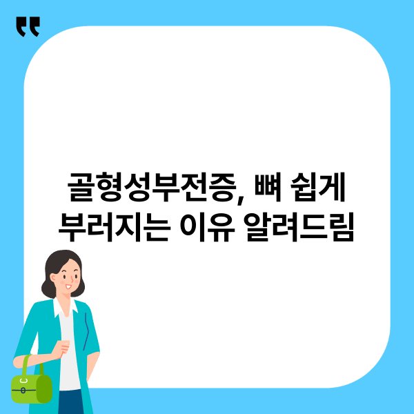 이 질환의 심각성은 개인마다 상이하며, 일부 환자는 경미한 증상을 경험하는 반면, 일부는 심각한 골절을 겪을 수 있습니다. 따라서 조기에 진단하고 치료하는 것이 중요합니다.