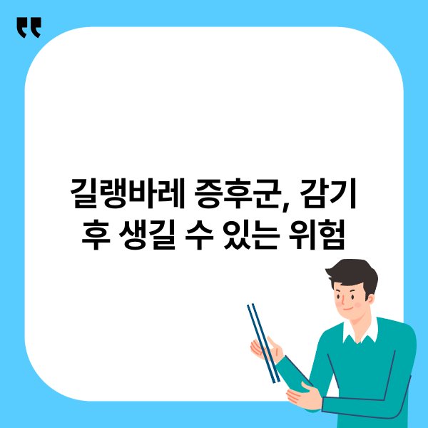 길랭바레 증후군은 감기 후에 발생할 수 있는 위험 중 하나로, 주의가 필요합니다. 감기와 같은 경증 감염이 이 질환의 발병 원인이 될 수 있으며, 특히 면역 체계가 약화된 경우 더욱 주의해야 합니다. 감기 증상이 심각해질 경우 의료 기관에 즉시 방문하여 진료를 받도록 해야 합니다.
