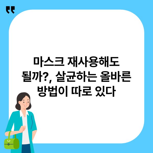 마스크는 공공장소에서의 감염 예방에 중요한 역할을 합니다. 그러나 재사용 시에는 항상 주의가 필요하며, 청결 상태를 유지해야 합니다. 안전한 마스크 착용은 개인의 건강뿐만 아니라 주변 사람들의 건강에도 영향을 미칩니다.