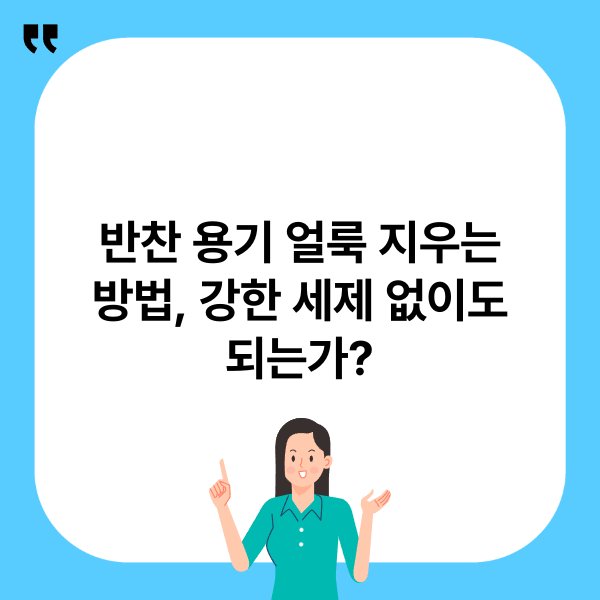 강한 세제를 사용하지 않고도 얼룩을 제거할 수 있는 방법으로 베이킹 소다와 식초를 활용할 수 있습니다. 베이킹 소다는 천연 세정제로 알려져 있으며, 얼룩 제거에 효과적입니다. 사용법은 반찬 용기 내에 베이킹 소다를 뿌리고 식초를 조금 추가한 후, 거품이 일어날 때까지 기다리는 것입니다.
