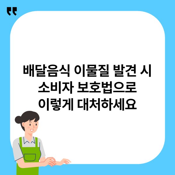 배달음식에서 이물질이 발견되었을 경우, 소비자는 즉시 신고하고 증거를 확보해야 합니다. 소비자 보호법은 이러한 상황에서 소비자의 권리를 보호하며, 피해 보상 요청이 가능함을 알려주었습니다. 소비자는 이물질 발견 시 적절한 절차를 통해 자신의 권리를 주장할 수 있으며, 소비자 보호원의 도움을 받을 수 있습니다. 앞으로의 소비 생활에서 안전성을 고려하는 태도가 필요합니다.