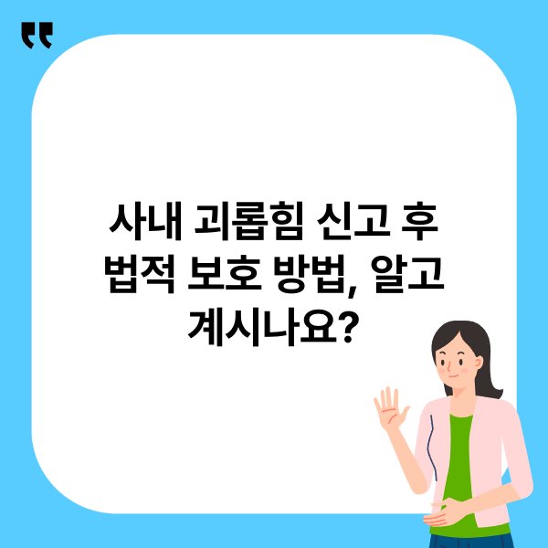 1. 사내 괴롭힘 신고 후 법적 보호를 받을 수 있는 방법이 있습니다.