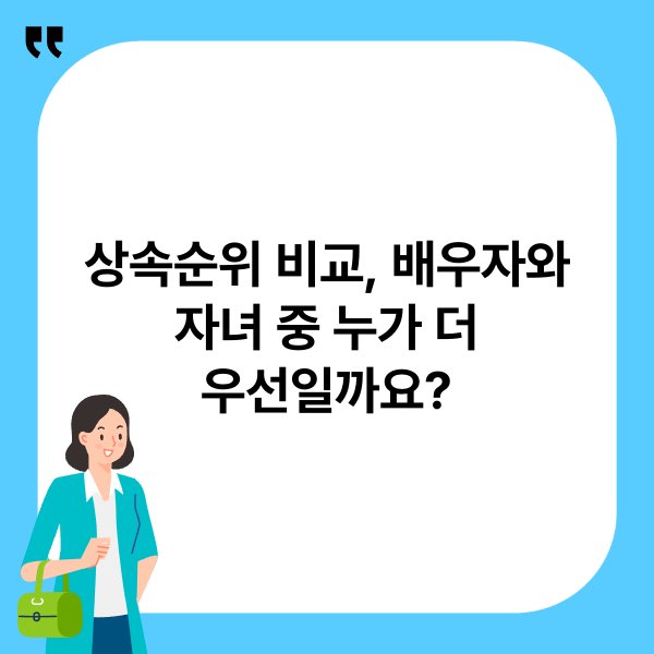 상속순위 비교에서 배우자는 자녀보다 우선권을 가집니다. 이는 법적으로 정해진 기준에 따른 것이며, 유언의 존재 여부, 혼인 상태 등의 변수에 영향을 받습니다. 고인의 재산을 공정하게 분배하기 위해서는 상속권에 대한 정확한 이해가 필요합니다. 추가적으로 상속 관련 법률이 변화하는 만큼, 최신 정보를 지속적으로 확인하는 것이 중요합니다.