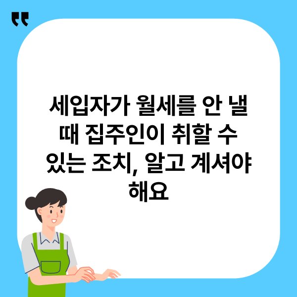 집주인은 세입자가 월세를 미납했을 경우, 법적으로 정해진 절차에 따라 조치를 취할 수 있습니다. 예를 들어, 미납 통지서를 발송하거나, 법원에 소송을 제기하는 등의 방법이 있습니다. 이러한 조치는 법적 근거가 필요하며, 각 지역의 법률에 따라 차이가 있을 수 있습니다.