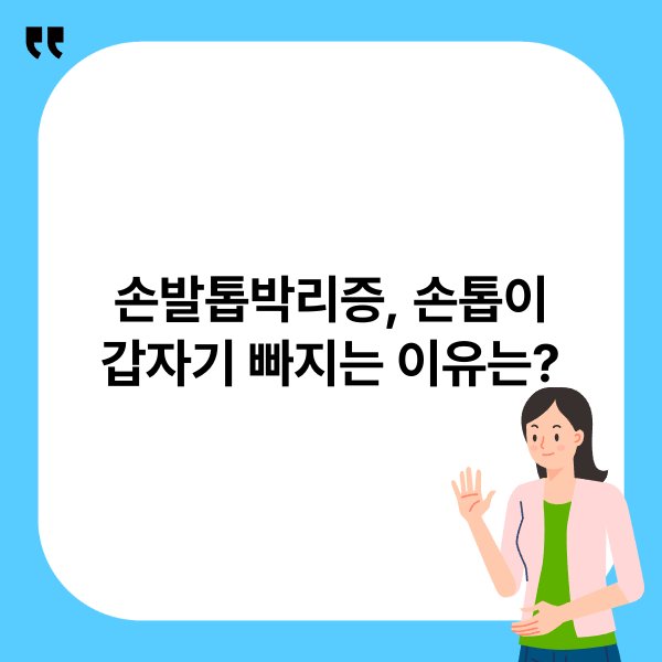 손톱이 갑자기 빠지면 주의 깊게 관찰하고, 필요할 경우 전문가의 진료를 받는 것이 좋습니다. 자가 진단보다는 전문가의 의견을 따르는 것이 안전합니다.