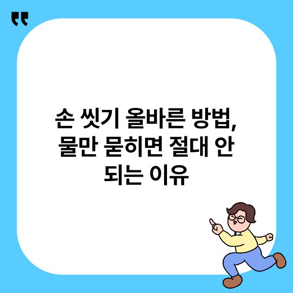 물만으로 손을 씻는 것은 세균 제거에 효과적이지 않습니다. 물은 세균을 헹궈내는 데 한계가 있습니다. 특히, 손에 있는 기름이나 오염물질은 물로는 제거할 수 없습니다.