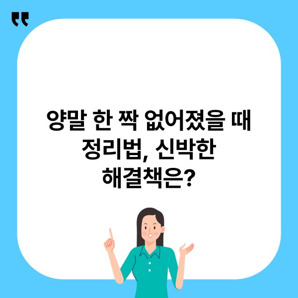 양말 한 짝이 없어지는 현상은 많은 가정에서 흔하게 발생하는 문제입니다. 이러한 상황은 일상에서 불편함을 초래하는 요소로 작용할 수 있습니다. 양말 한 짝을 잃어버린 경우, 어떻게 정리하고 해결할 수 있는지에 대한 다양한 방법이 존재합니다. 본문에서는 양말 한 짝 없어졌을 때의 정리법과 신박한 해결책을 살펴보겠습니다.
