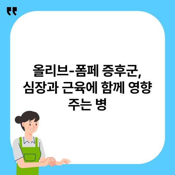 1. 올리브-폼페 증후군은 유전적 질환으로 심장과 근육에 영향을 주는 병입니다.