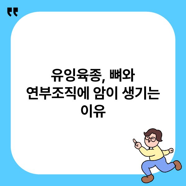 유잉육종은 주로 아동과 청소년에서 발생하는 드문 형태의 뼈암으로, 주로 뼈와 연부조직에 발생합니다. 이 질환은 뼈의 성장과 발달에 영향을 미치는 세포에서 발생하는데, 정확한 원인은 아직 연구 중입니다. 유잉육종의 발생 원인과 관련된 여러 요인들을 살펴보는 것은 이 질환의 예방 및 치료에 중요한 정보를 제공합니다. 본문에서는 유잉육종의 정의와 발생 요인, 그리고 뼈와 연부조직에 암이 생기는 이유에 대해 자세히 설명하겠습니다.