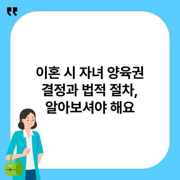 최근 이혼 시 자녀의 양육권 결정이 중요한 이슈로 떠오르고 있습니다. 이혼 과정에서 부모의 역할과 책임이 명확히 규정되어야 하며, 자녀의 복지를 최우선으로 고려해야 합니다. 자녀 양육권 결정은 법적 절차와 기준에 따라 이루어지며, 부모 간의 협의가 필수적입니다. 본문에서는 이혼 시 자녀 양육권 결정 과정과 관련 법적 절차를 구체적으로 설명하고, 필요한 정보를 제공하겠습니다.