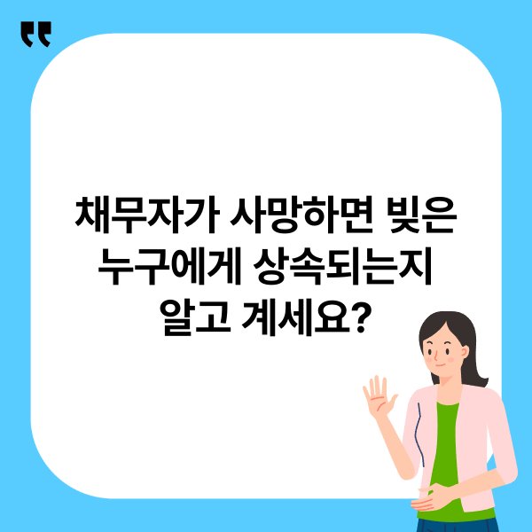 채무자가 사망하면 그 빚은 상속인에게 상속됩니다. 상속인은 채무 상속을 거부할 수 있는 권리가 있으며, 상속받은 채무는 상속재산의 범위 내에서만 책임이 존재합니다. 또한, 상속과 관련된 법적 절차와 세금 문제도 고려해야 합니다. 이러한 내용을 이해하고 준비하는 것이 상속인이 채무 문제를 효과적으로 대처하는 데 도움이 될 것입니다.