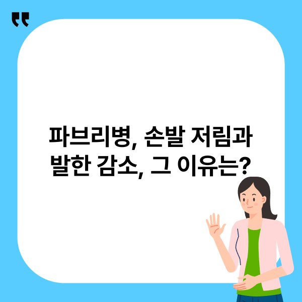 파브리병은 유전적 대사장애로, 주로 손발 저림과 발한 감소와 같은 증상을 동반합니다. 본 질환은 효소 결핍으로 인해 체내에서 특정 지방산이 축적되어 발생하는데, 이로 인해 다양한 신경학적 및 피부 증상이 나타납니다. 손발 저림은 신경 손상으로 인해 발생하며, 발한 감소는 체온 조절 기능에 영향을 미치는 것으로 알려져 있습니다. 이 글에서는 파브리병의 증상과 그 이유에 대해 상세히 설명하고, 관련된 정보와 통계를 제공하여 독자의 이해를 돕고자 합니다.